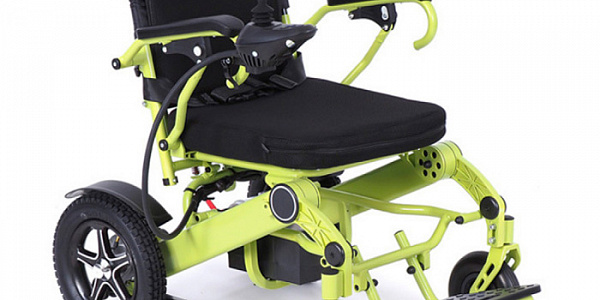 Электрическое кресло-коляска с компактно складывающейся рамой.